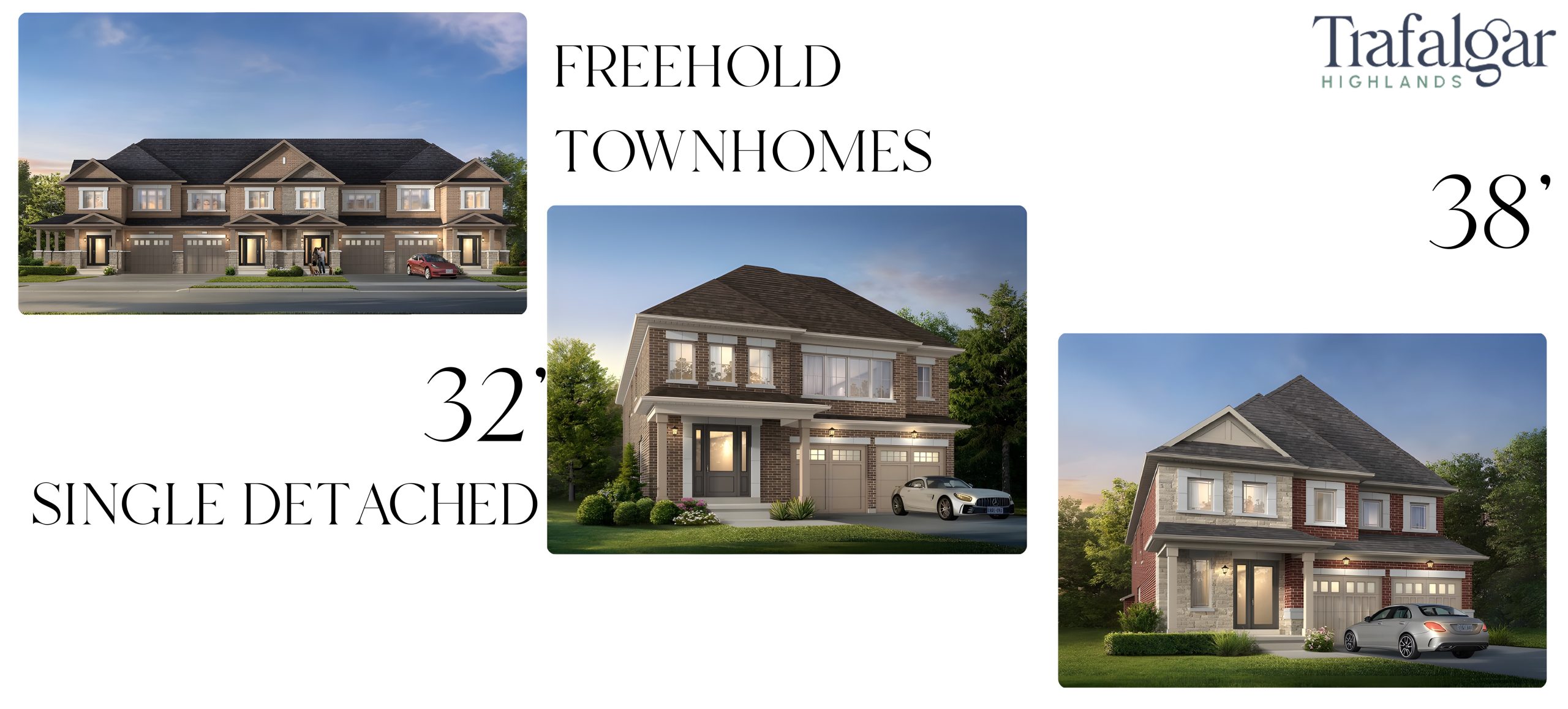Trafalgar Highlands is a verified new pre-construction freehold townhome and single-family home community by Coscorp Inc., located in the heart of North Oakville. This thoughtfully planned neighborhood offers a peaceful, family-oriented environment surrounded by nature and modern conveniences. Featuring a refined collection of spacious 32’ and 38’ detached homes and elegant freehold townhomes, Trafalgar Highlands combines stylish architecture with energy-efficient materials and open-concept layouts. Just minutes from major highways (407, 401, 403/QEW), Sheridan College, and Oakville Trafalgar Memorial Hospital, the community provides unmatched connectivity, making it ideal for families, professionals, and investors alike. With pricing starting from the low $1 millions, it offers an exceptional opportunity to own in one of the GTA’s most desirable and fast-growing areas.